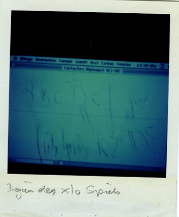 Der zeitliche Ablauf ist auf die Unmittelbarkeit der Eingriffe – das Fragmentarische gerichtet. Es sollte hier nicht strategisch geplante Kunstfertigproduktion betrieben werden, sondern die Möglichkeit ergriffen werden, etwas zu entwickeln, aufzunehmen und es weiter zu treiben. Demnach wird auf die Transparenz der Abläufe, die Nachvollziehbarkeit persönlicher Befindlichkeiten und die Darstellung des üblicherweise ausgeblendeten künstlerischen „Vorspiels“ Wert gelegt.