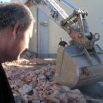 Abriss des ehem. Kino im Augarten mit der mural (Wandmalerei) an der Nordfassade