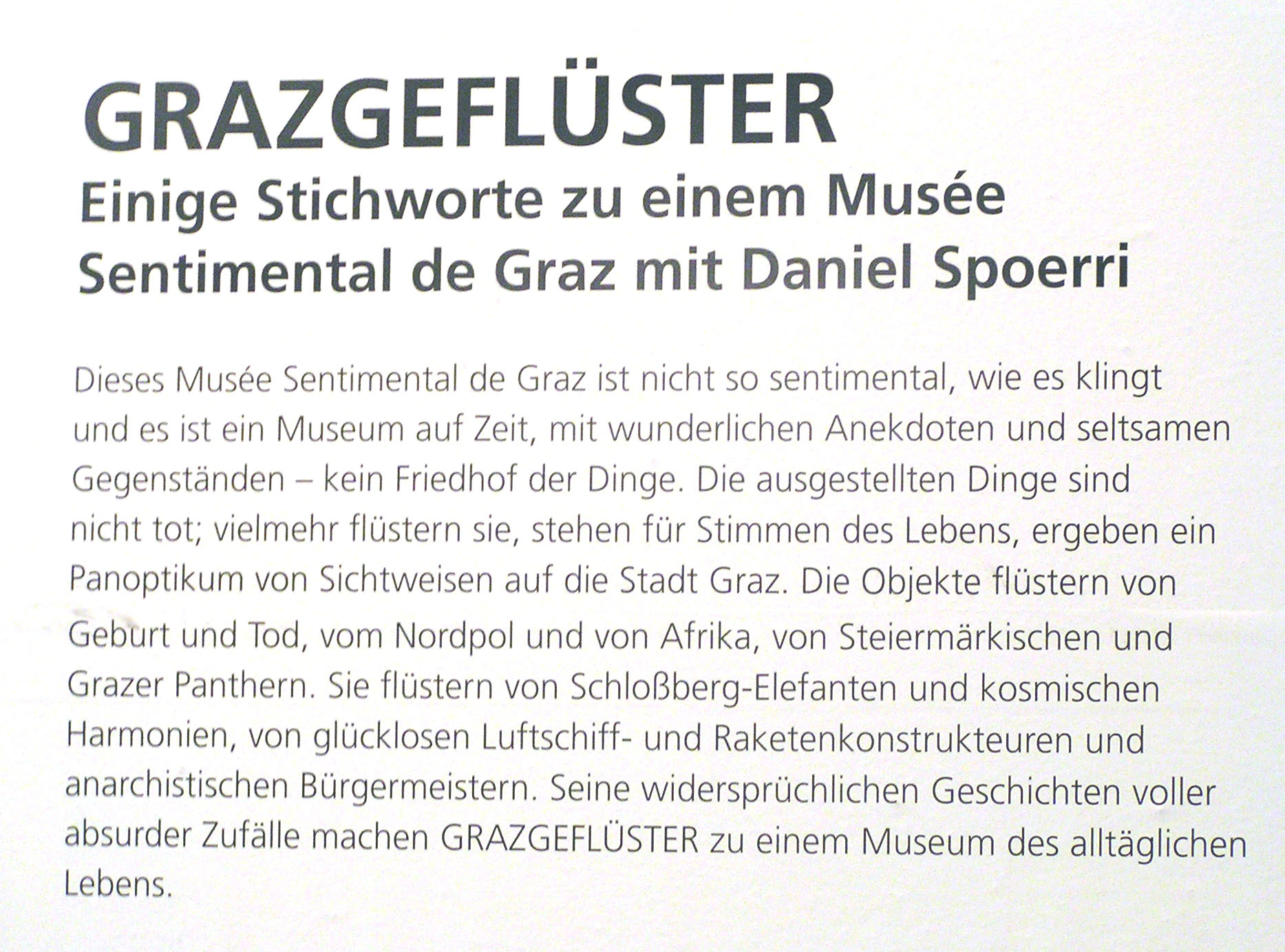 Ein Stichwort zu einem Mural-Fragment von Leonel Cerrato Jirón im Musée Sentimental de Graz mit Daniel Spoerri