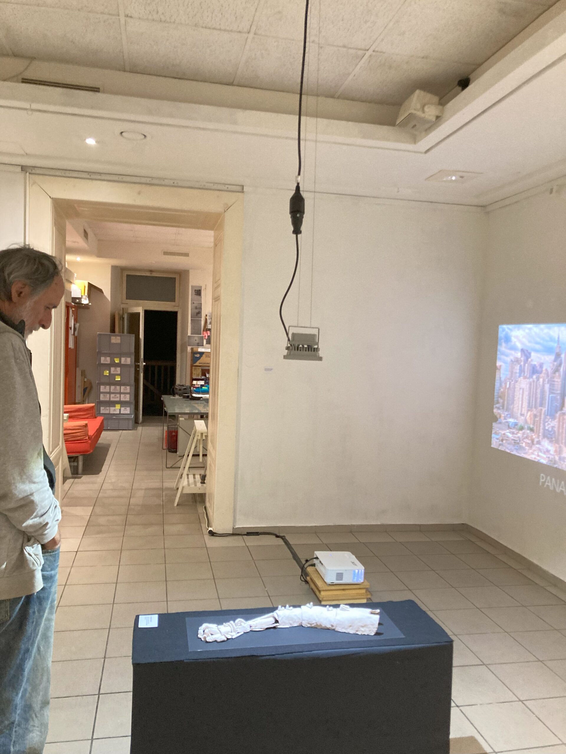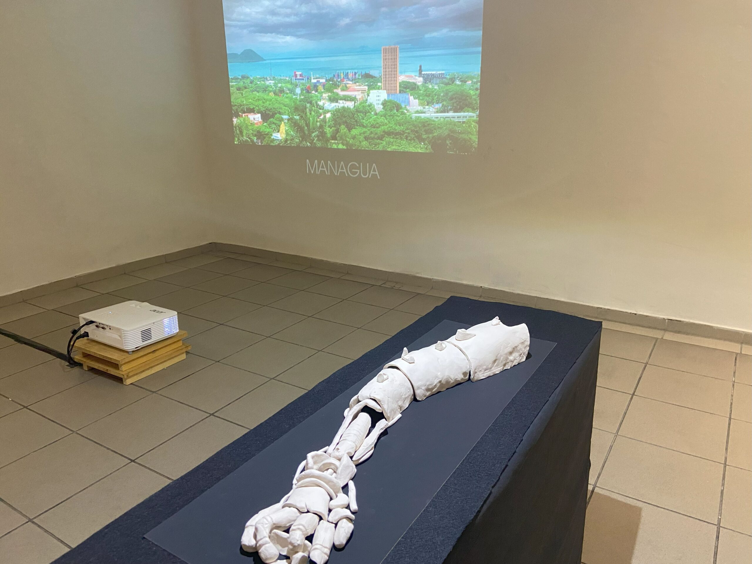Die Ausstellung repräsentiert eine kleine Welt in all ihren Widersprüchen. Zentralamerika – meine Region – erscheint als fraktale Repräsentation des Universums. Diese Region nach Europa zu transferieren stellt sich aus meiner Perspektive als ein Spiel fraktaler Maßstäbe dar, das die Maschinerie der Zivilisation in Bewegung setzt.