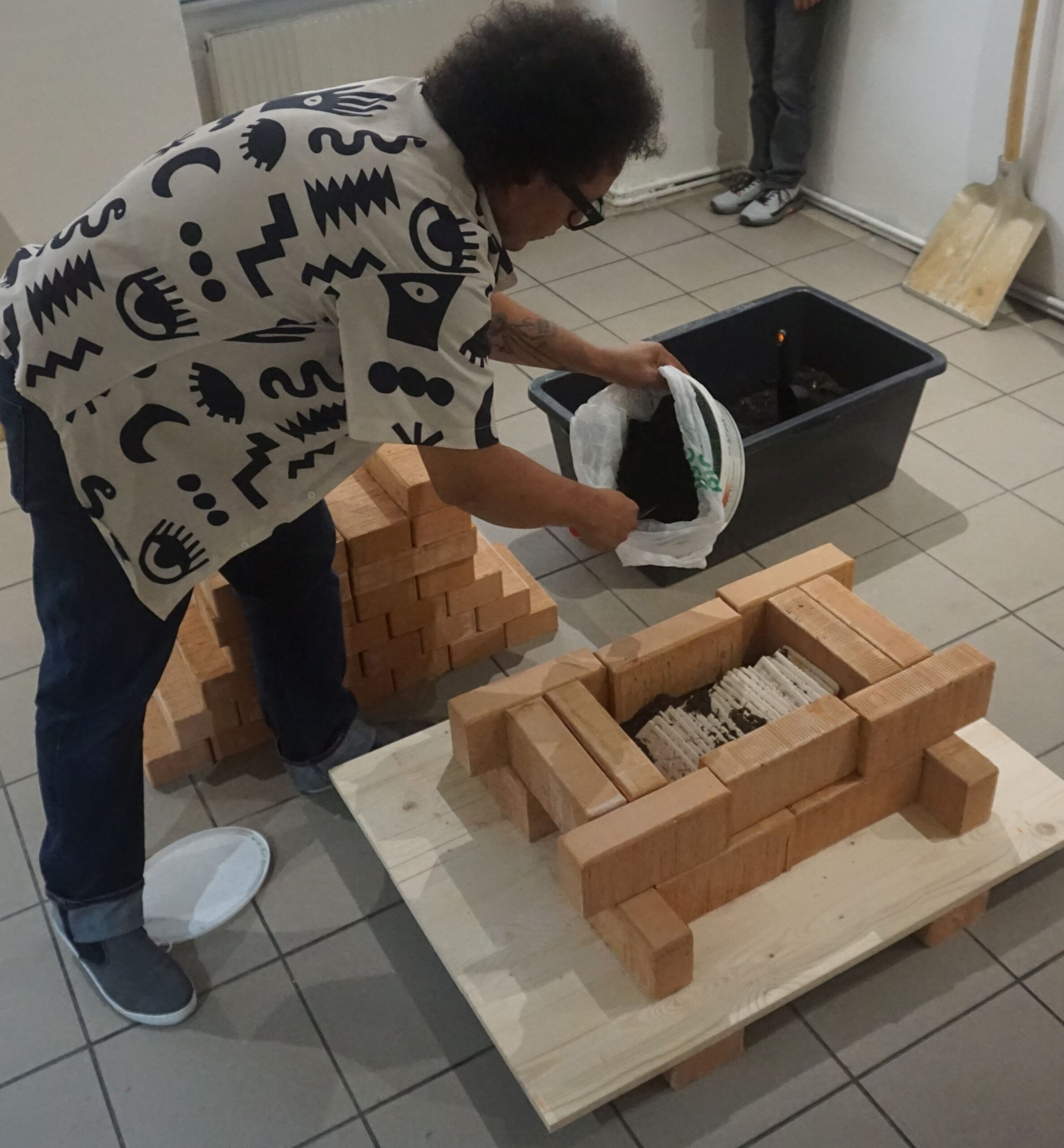 Das Publikum ist eingeladen, an der Abschlussaktion aktiv mitzuwirken. Deshalb bitten wir das Publikum, auch selbst etwas Erde für die Abschlussaktion mitzubringen.